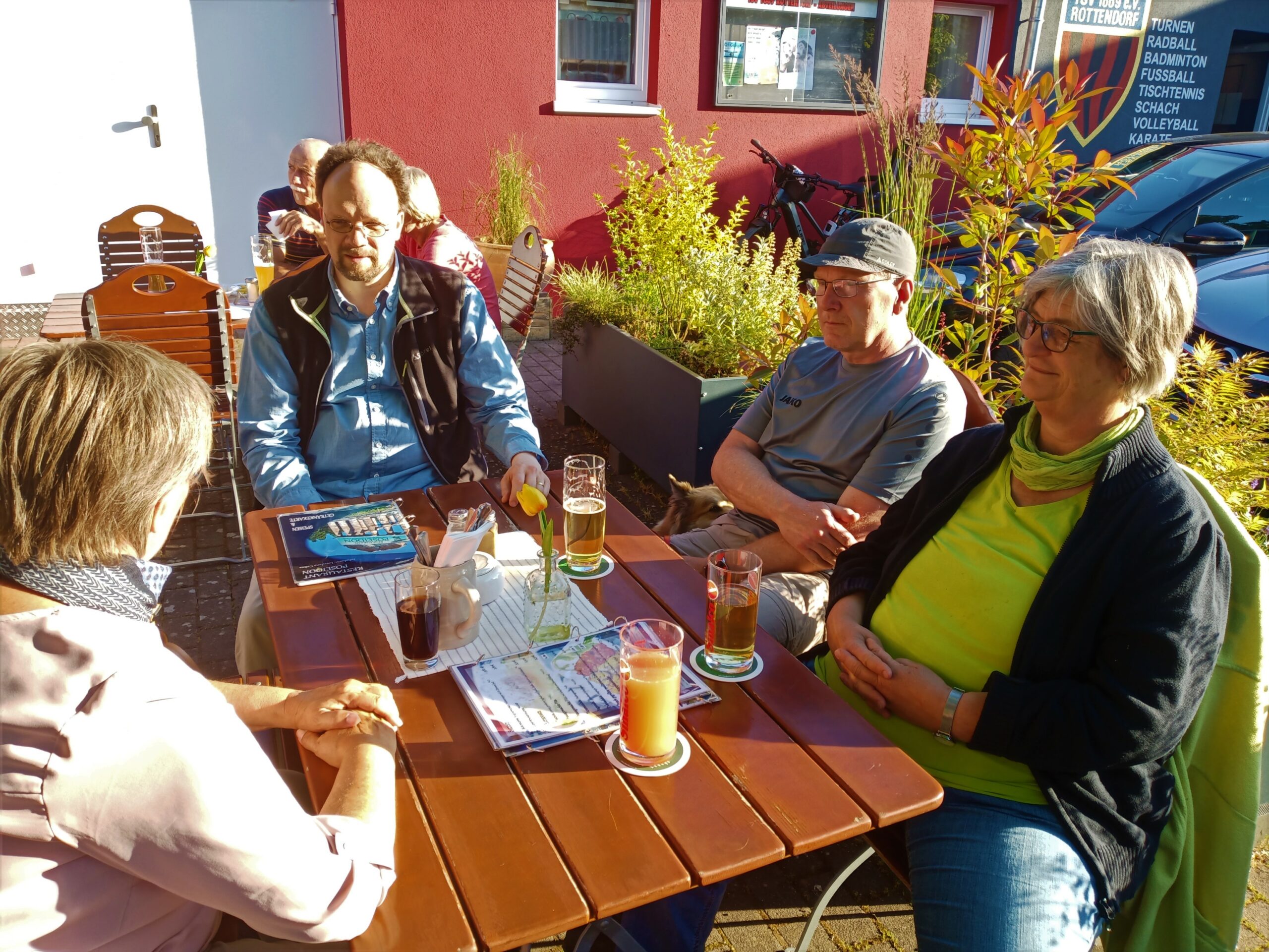 Da man entspannt im Garten des „Poseidon“ zusammensaß, konnten auch zufällig vorbeikommende Rottendorfer*innen sich kurz mit ihrem Vertreter im Landtag unterhalten, wovon rege Gebrauch gemacht wurde. Nächste Gelegenheit unseren Abgeordneten zu treffen, besteht am Dorffest am Sonntag, 10. Juli, um die Mittagszeit. Am besten ist immer der persönliche Austausch!