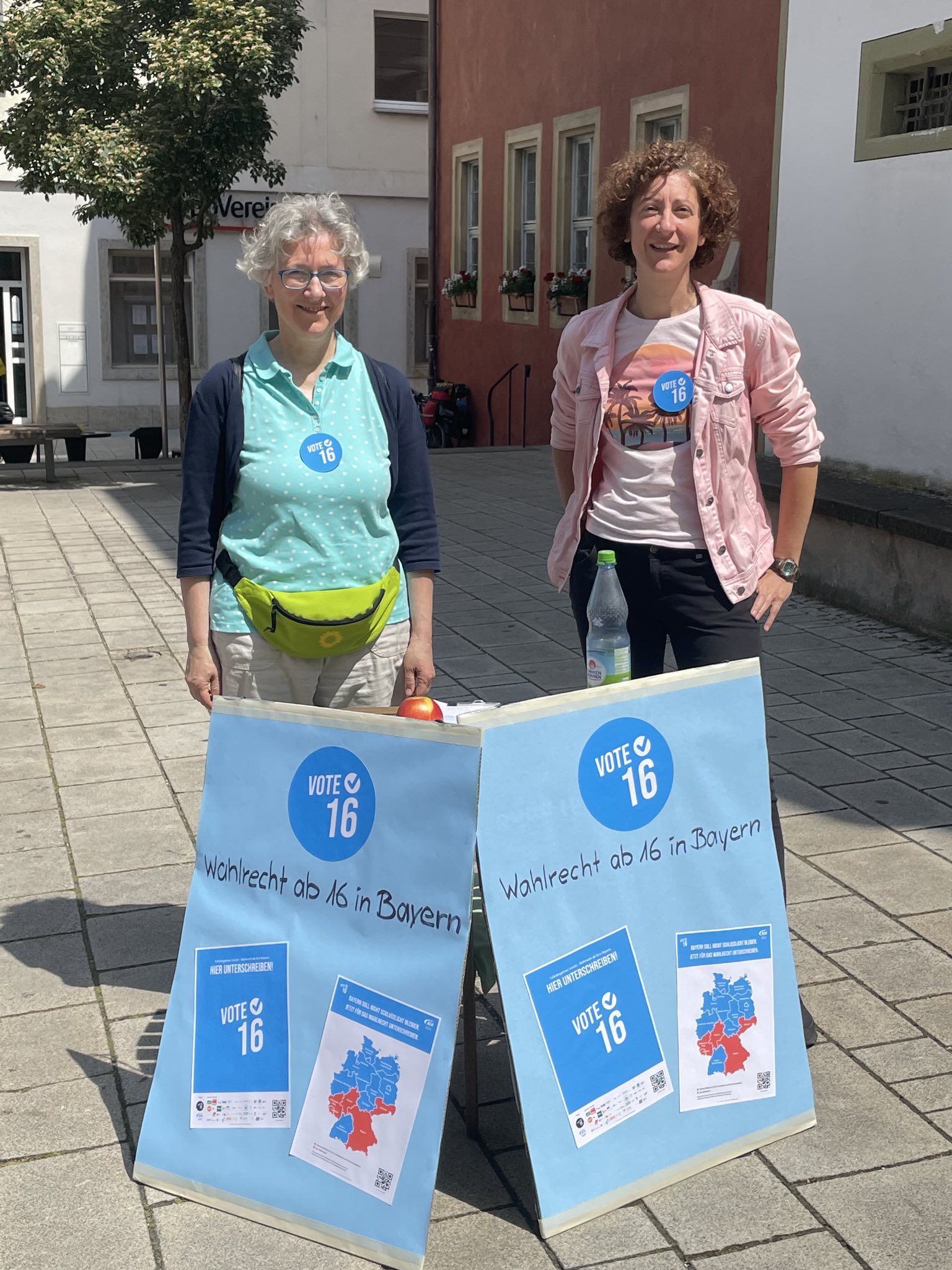 Ochsenfurter Grüne stellten sich am 3. Juni erstmals vor das Rathaus und sammelten Unterschriften für die Zulassung des Volksbegehrens „VOTE 16 – Wahlrecht ab 16 in Bayern“. Ab dem zweiten Infostand verstärkt die SPD das Ochsenfurter Team – denn sie gehören auch zu den Bündnispartnern von VOTE 16. Rund 50 Unterschriften konnten schon eingesammelt werden. Das unermüdliche Team merkte schnell, dass die Skepsis bei vielen Wahlberechtigten groß ist und durchaus Aufklärungsbedarf zum Thema Wahlrecht besteht.