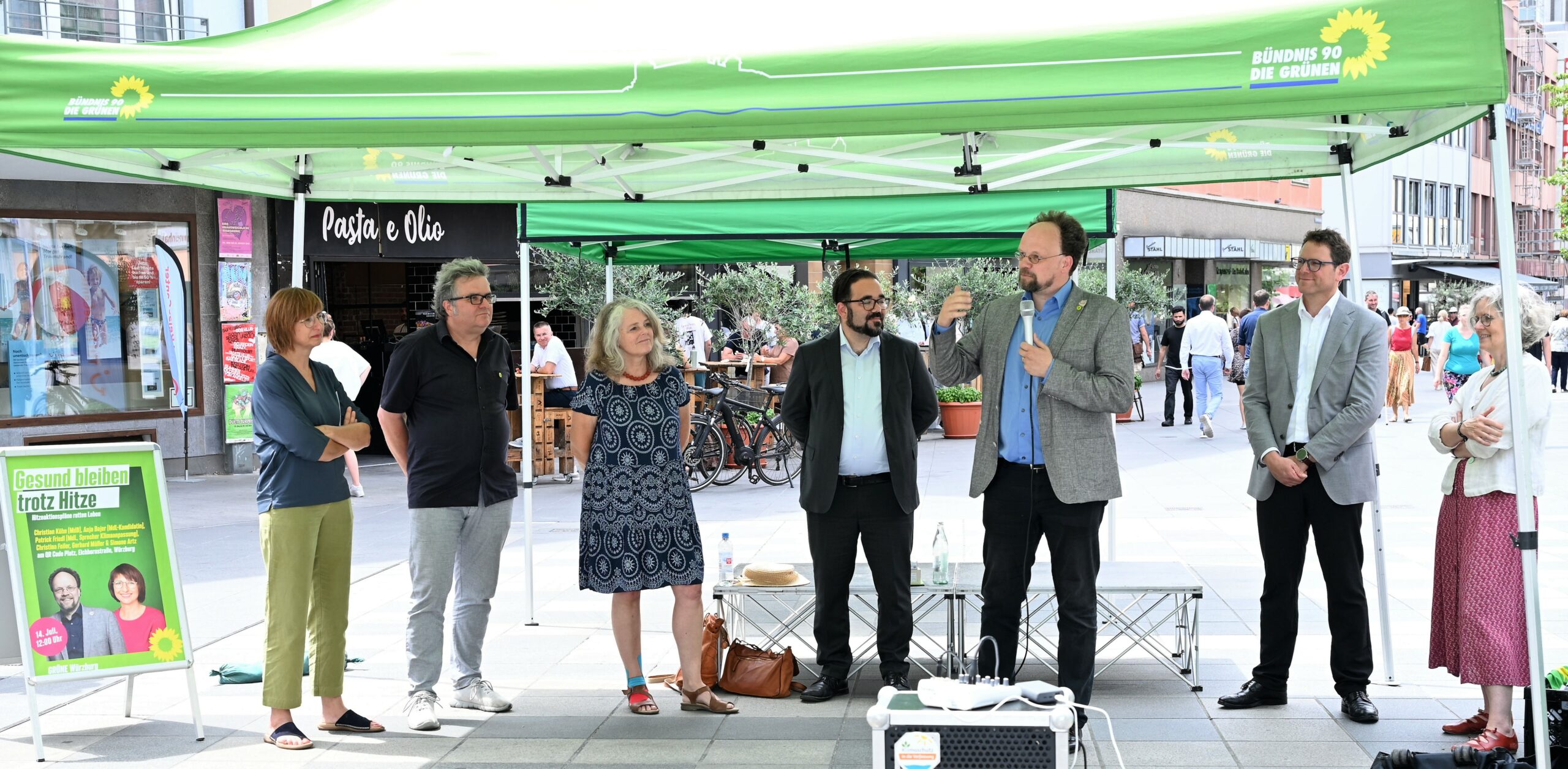 Auch Würzburgs Klimabürgermeister Martin Heilig erwähnte in seiner Rede, dass in seiner Zeit im Rathaus bereits einiges auf den Weg gebracht wurde und Würzburg viele Maßnahmen zur Klimaanpassung bereits umsetze. Als Grund hob er motivierte Mitarbeiter und eine starke grüne Stadtratsfraktion hervor. Heilig sprach dennoch von einer weiterhin großen Herausforderung bei der noch viel zu tun sei, was auch an Würzburgs Kessellage und starken Versiegelung liegt. Dies kann jedoch nur mit einer unterstützenden Bundes- sowie Landesregierung gelingen. Heilig: „In der Bundesregierung wurde glücklicherweise der Boost eingeschaltet, um Klimaschutz und auch Klimaanpassung zu machen.“