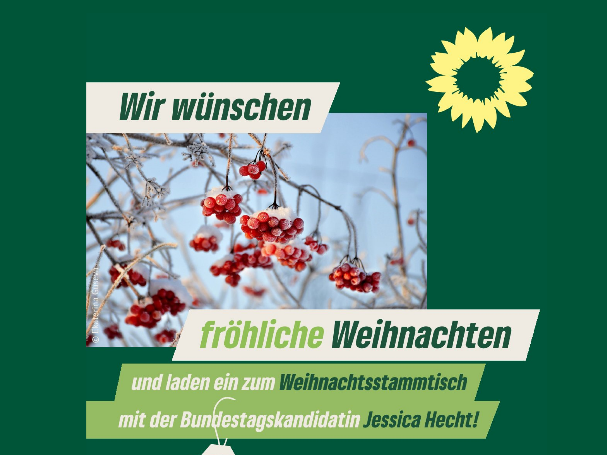 Ein Flyer zur Terminankündigung mit er Aufschrift: " Fröhliche Weihnachten und laden ein zum Weihnachtsstammtisch mit der Bundestagskandidatin Jessica Hecht."