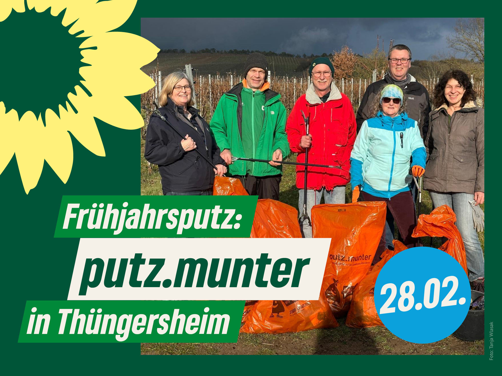 Auch 2025 war der Ortsverband GRÜNE Thüngersheim bei der putz.munter-Aktion des Landkreis Würzburg wieder dabei. Eine motivierte Gruppe befreite den Bereich rund um den Bahnhof und entlang des Radwegs Richtung Veitshöchheim von allem möglichen Unrat.