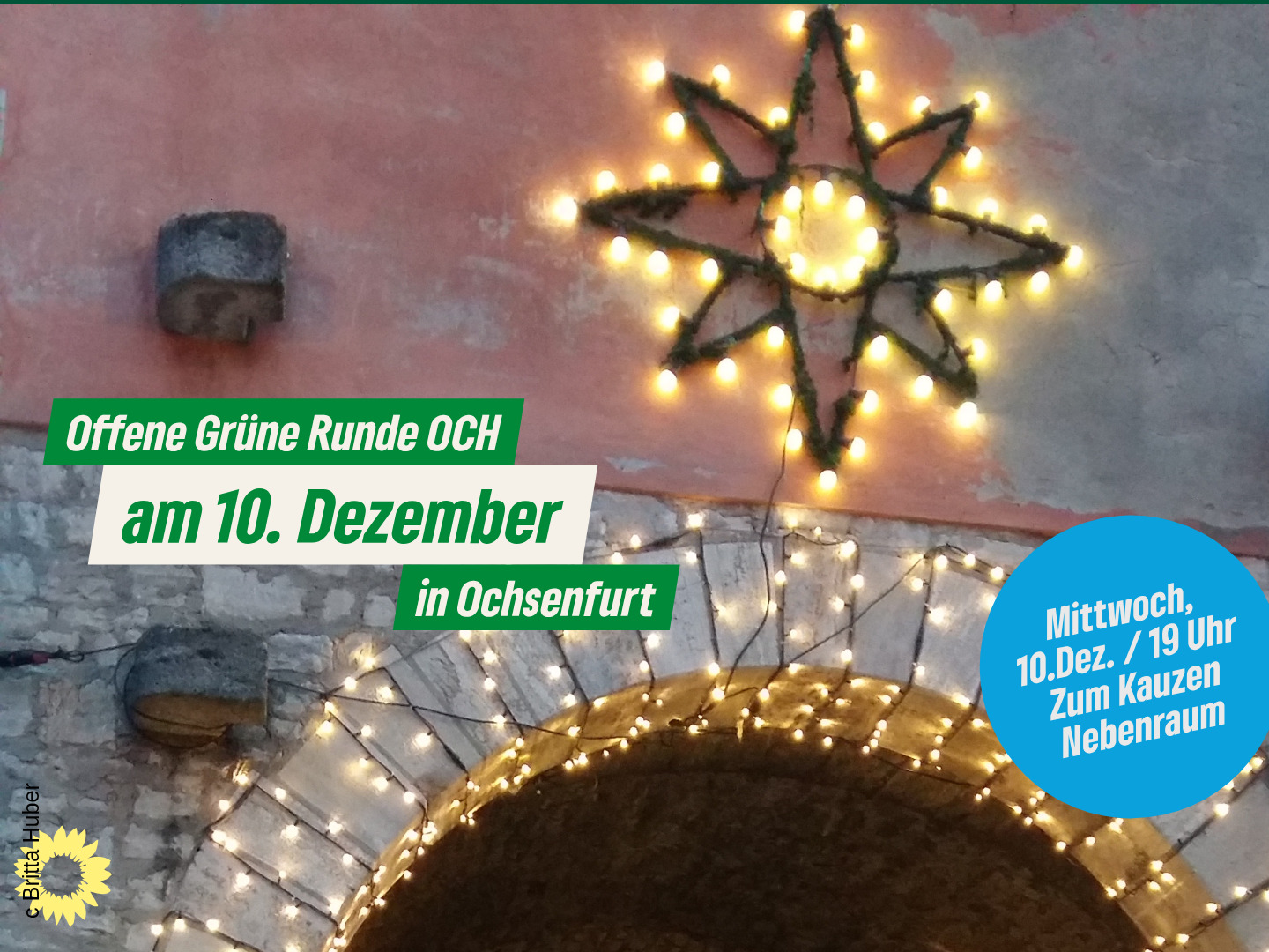 Offene Grüne Runde in Ochsenfurt – am Mittwoch, 10. Dezember 2025 um 19 Uhr im Gasthof Zum Kauzen / Nebenraum.