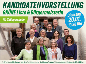 Kommt vorbei zum Grünen Bürgerstammtisch – nächstes Treffen: Dienstag, 16. Dezember 2025 um 19:30 Uhr im Winzerhof, Veitshöchheimer Straße 29, Thüngersheim. Erzählt uns, was euch für Thüngersheim am Herzen liegt. Miteinander reden. Einander zuhören. Willkommen sind alle interessierten Bürger.