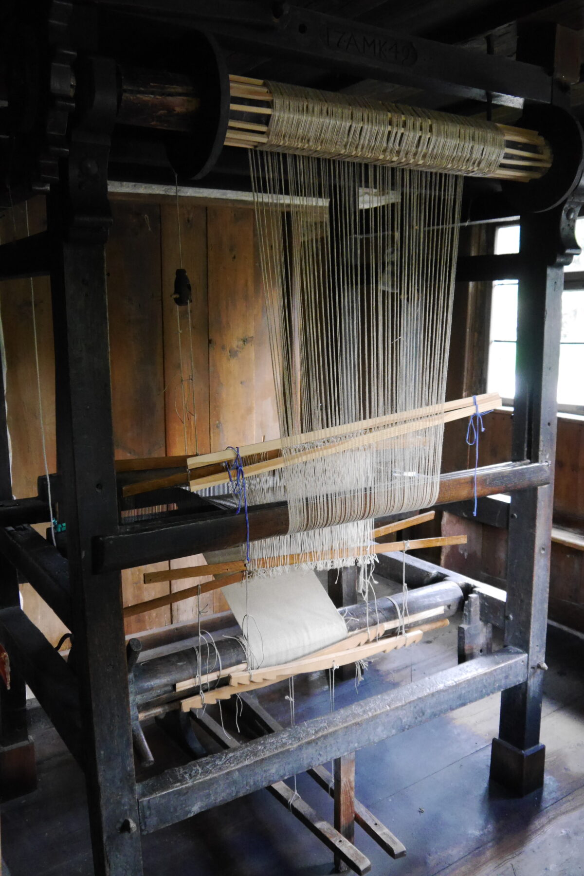 Um einen Wollschal zu erhalten, genügt heute ein Klick im Internet. Und wie war das seinerzeit? Geringfügig aufwendiger schon! Erstmal brauchte man ein Schaf mit dichtem Fell, das man im Bach gereinigt hat. Anfang Mai wurde es dann geschoren. Das Museum besitzt Scheren, so wie sie früher einmal waren. Handgeschmiedet. Bereits vom Ausprobieren tun einem die Hände weh, aber damit ein ganzes Schaf scheren! Und noch dazu ohne abzusetzen, denn das Vlies wollte man am Stück.